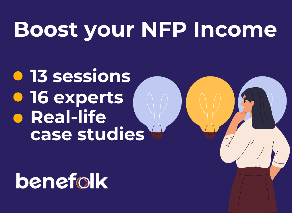 The Benefolk Boost Your NFP Income course is all about ways you can strengthen and tweak your existing efforts to supercharge income, financial sustainability and resilience.